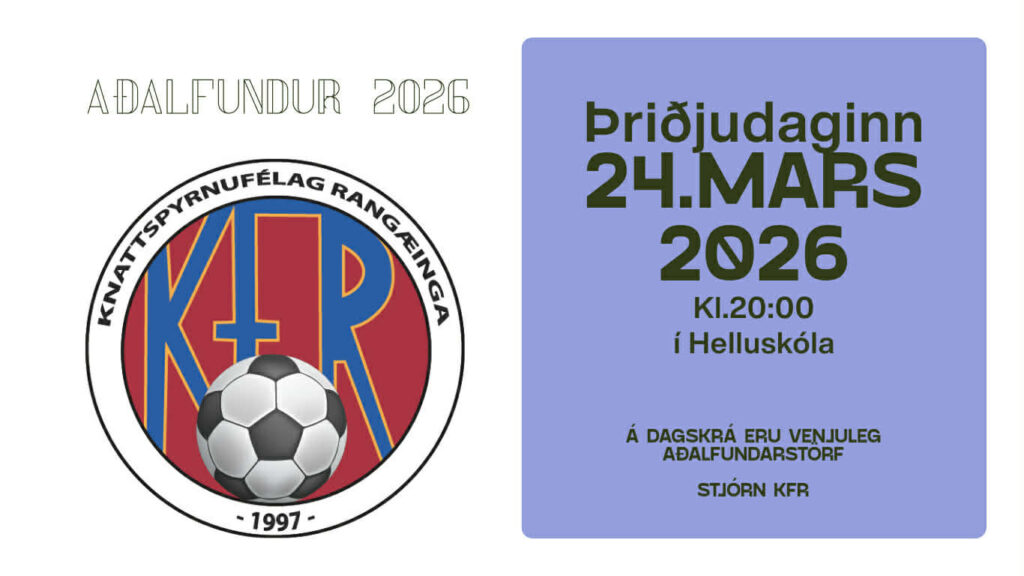 Nýjustu Fréttir: Aðalfundur KFR 24. mars 2026 KFR deildarmeistari 5. deildar 2025 Helgi Valur Smárason – 100 leikir fyrir KFR Aðalfundargerð KFR – fyrir árið 2020 Ársreikningur KFR – 2020 Vetraræfingatafla 2025-2026